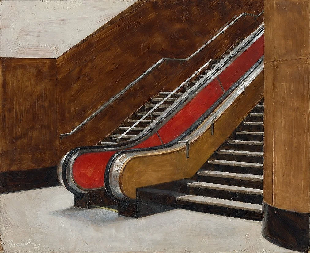 Red Escalator (Brooklyn Library), 2007, encaustic on wood, 16” x 20”