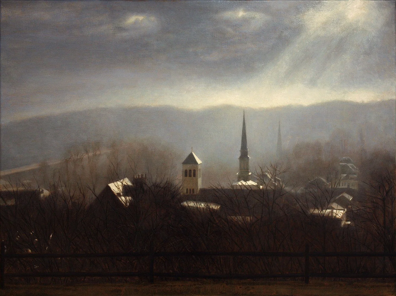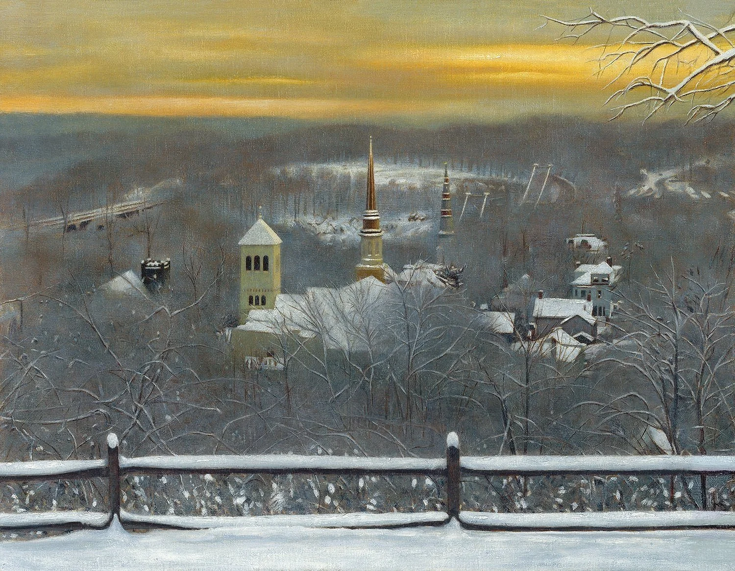 Winter View of The Rondout from The Hill, Kingston, NY, 2016, oil on linen, 14” x 18” (NFS)